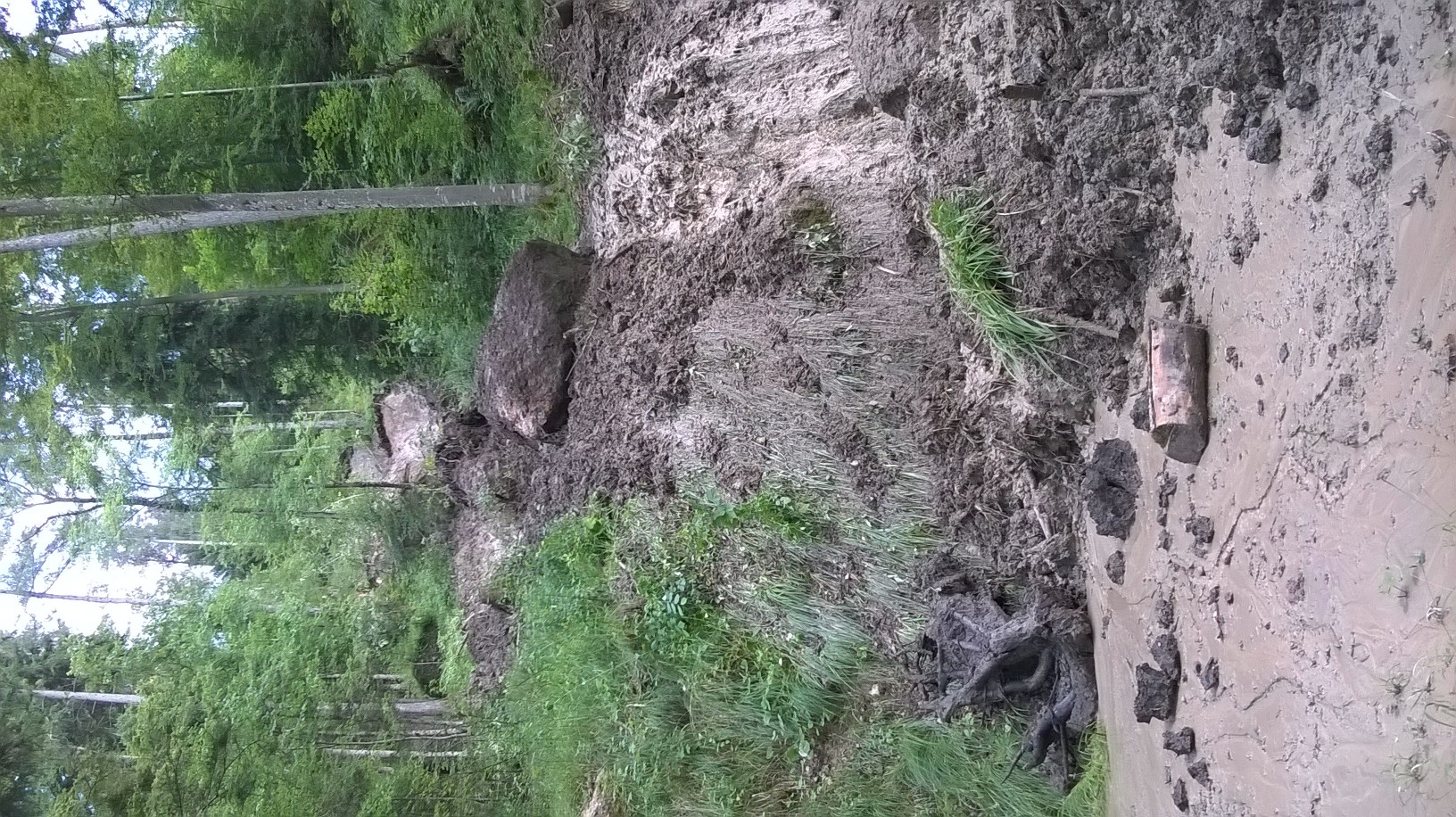 Foto 1: Ein von Oberflächenwasser ausgelöster Rutsch erstreckt sich bis auf Waldstrasse