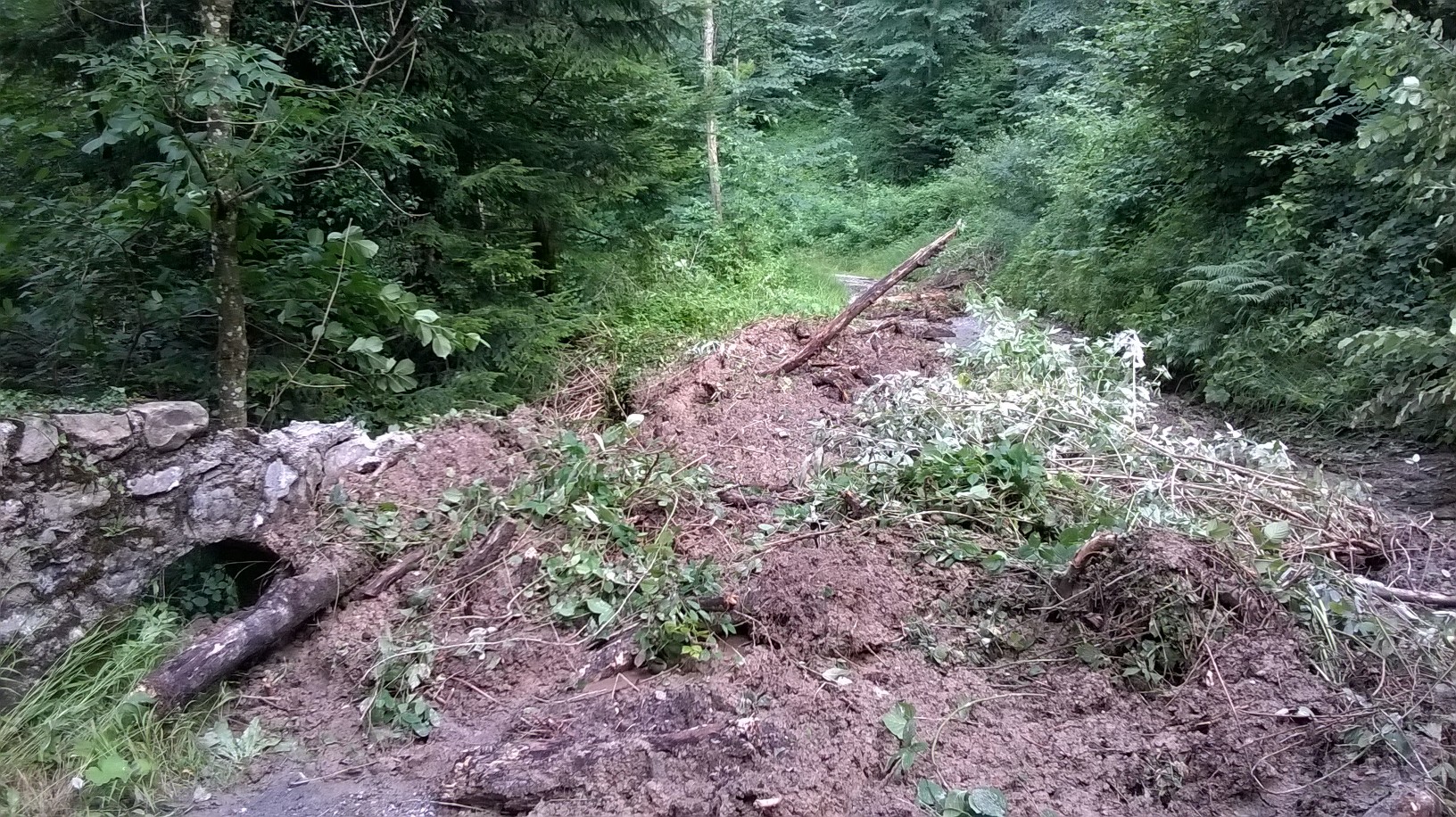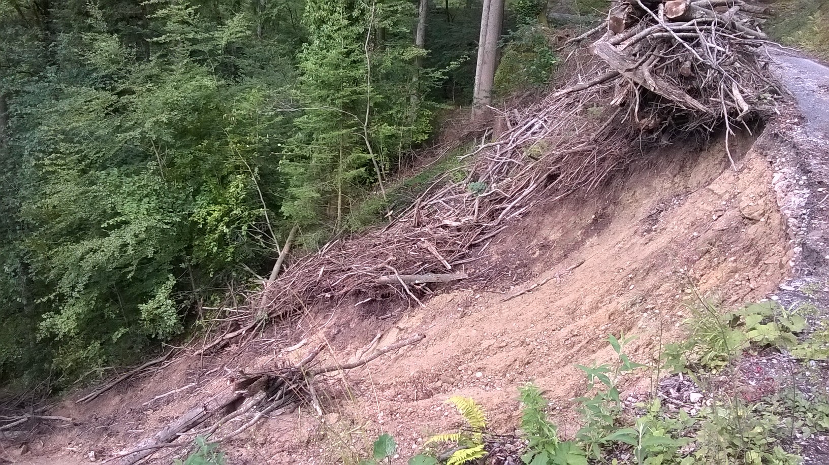 Foto 2: Eine Waldstrasse rutschte teilweise in die Tiefe