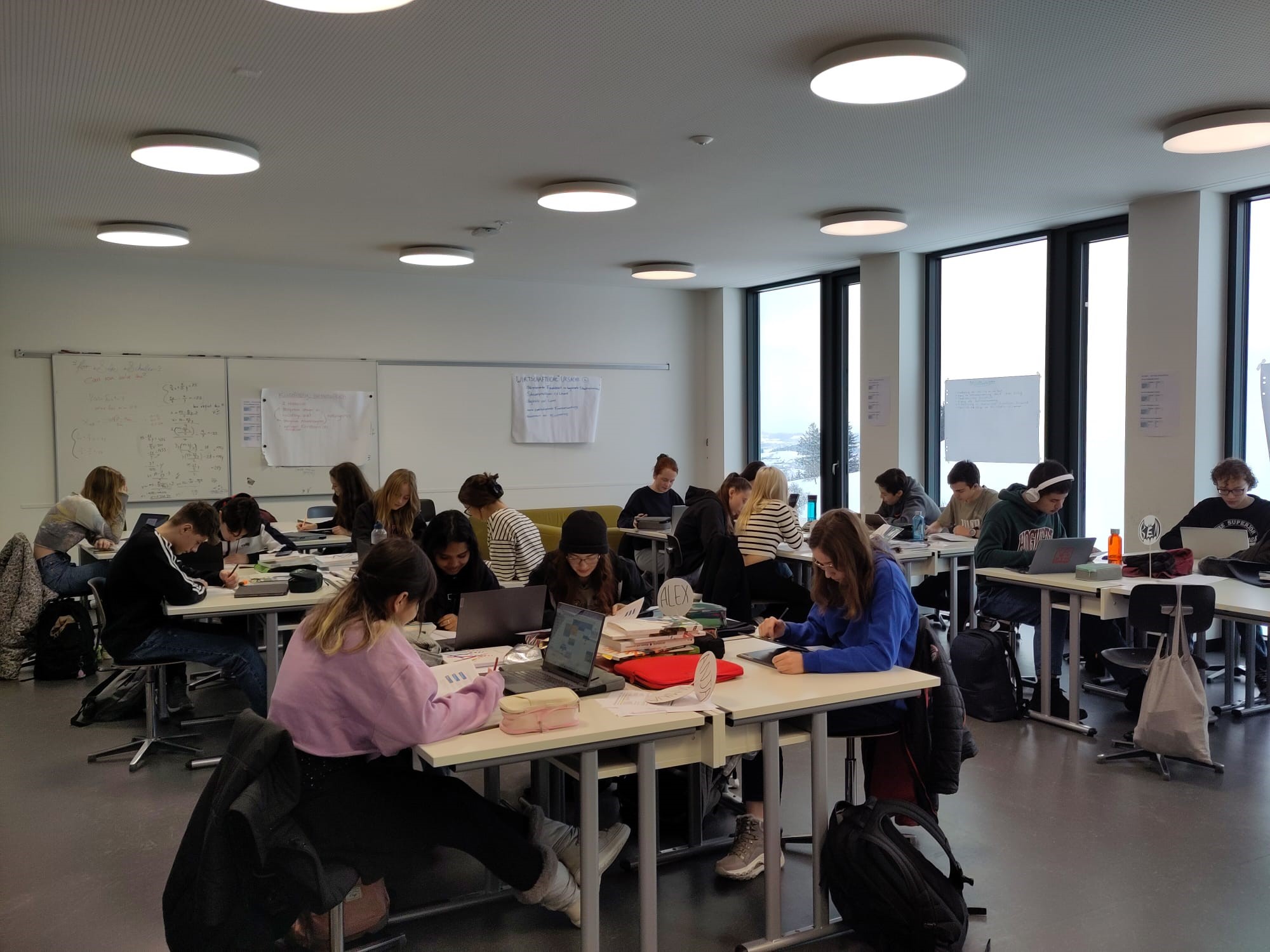 Die Erfahrungen mit der neuen Unterrichtsform sind sehr positiv, wie nun die im Januar 2023 durchgeführte Zwischenevaluation zeigt: 17 von 20 «L+» Schülerinnen und Schülern würden erneut eine «L+» Klasse wählen. «Das L+-System ermöglicht es mir, mit Freiheit und Selbstverantwortung zu lernen», so die Schülerinnen und Schüler Konstantinos Koulouris, Jimena Galan, Alina Borner und Adria Kuypers. Eine grosse Mehrheit der Schülerinnen und Schüler gab zudem an, dass ihnen mit «L+» gut gelingt, sich das neue Wissen selbständig und eigenverantwortlich anzueignen, sich kritisch und vernetzt damit auseinanderzusetzen sowie über den eigenen individuellen Lernfortschritt bewusst nachzudenken. Neben der Vermittlung von fachlichen Kompetenzen und Fachwissen ermöglicht «L+» die Stärkung von überfachlichen Kompetenzen wie der Selbst-, Methoden- und der Sozialkompetenz, welche als wesentliche Voraussetzung für die «Studierfähigkeit» und die «allgemeine Hochschulreife» gelten. Sehr positiv beurteilt werden in diesem Zusammenhang die Autonomie bezüglich des Lernzeitpunkts, des Lernorts sowie der Sozialform. Sowohl aus der Sicht der Schülerinnen und Schüler als auch aus der Sicht der Lehrpersonen ist es den Lernenden im «L+» gelungen, Kompetenzen in Zeitmanagement, Planung und Teamfähigkeit weiterzuentwickeln. Alles Fähigkeiten, welche später auch an der Uni und in der Berufswelt zu den Schlüsselkompetenzen gehören.