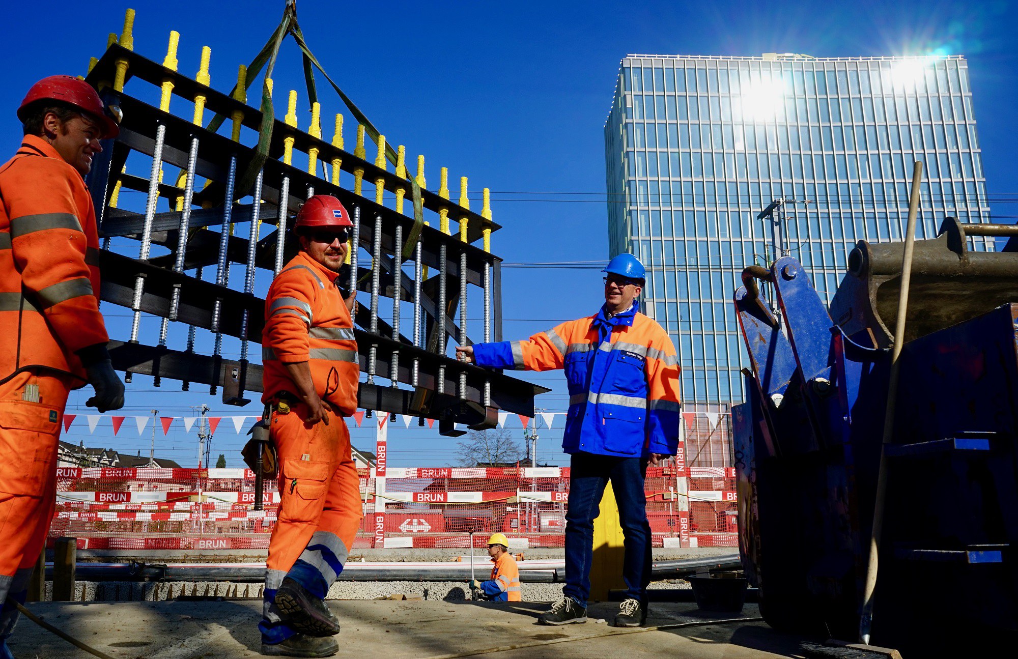 Die Arbeiten für das Fundament der Personenüberführung Ost beim Bahnhof Rotkreuz laufen planmässig. Die Pfählungen zur Stabilisierung des Fundaments im Untergrund sind abgeschlossen. Jetzt werden die Ankerkörbe einbetoniert. Sie sind das Übergangsstück zwischen Fundament und Brücke und dienen der Montage der Stahlstützen. Im Mai sollen die vorgefertigten Brückenteile in diversen Nachtaktionen über die Geleise gehoben und montiert werden. Interessant wird es in der Nacht vom 19. auf den 20. Mai sowie in der Nacht vom 25. auf den 26. Mai. In diesen Nächten werden die Hauptelemente mit einer Spannweite bis 54 m und einem Gewicht bis 140 Tonnen eingehoben. Die Überführung soll im September dem Publikum übergeben werden. Rund 15'000 Reisende benutzen den Bahnhof Rotkreuz täglich. Er ist damit der zweithäufigst frequentierte Bahnhof im Kanton Zug.
