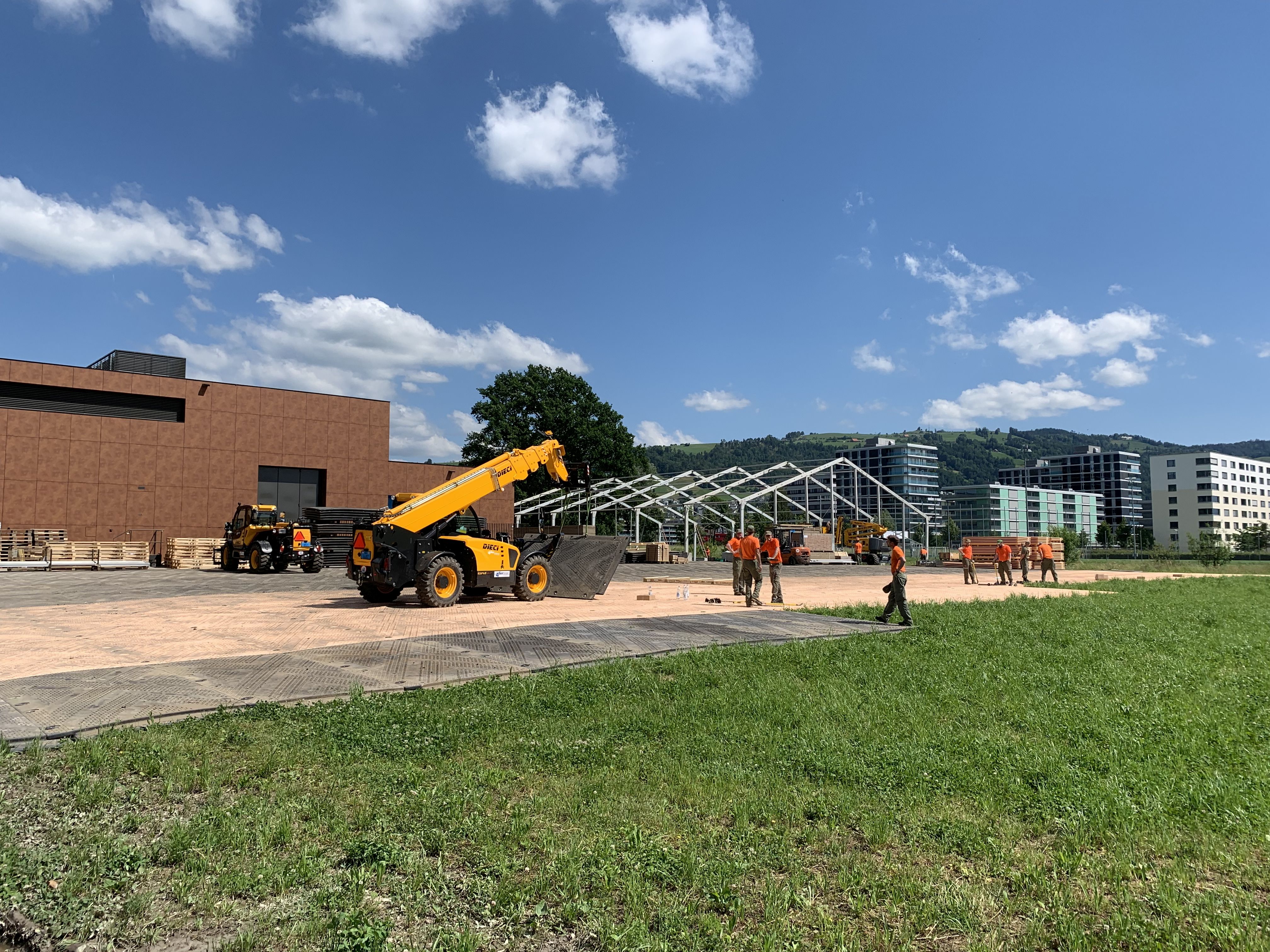 Während den Auf- und Abbauarbeiten wurden die drei Pionierkompanien der Zivilschutzorganisation des Kantons Zug (ZSO) vom Zivilschutz der Kantone Uri, Schwyz, Obwalden und Nidwalden sowie von der Zivilschutzorganisation Albis aus dem Kanton Zürich unterstützt. Zu den Aufgaben der Pioniere gehörte das Verlegen von Bodenplatten auf einer Fläche von rund 46 700 Quadratmetern, was etwa 6,5 Fussballfeldern entspricht. Weiter stellten die Pioniere 18 grössere Festzelte und rund 50 Grill- und Verpflegungsstände auf. Im Bereich der Arena, der Festmeile und des Campings errichteten sie Absperrungen mit Absperrgittern auf einer Länge von ungefähr 10 Kilometern. Zudem erstellten sie Podeste für sanitäre Anlagen und Rampen sowie Absperrungen aus Holz.