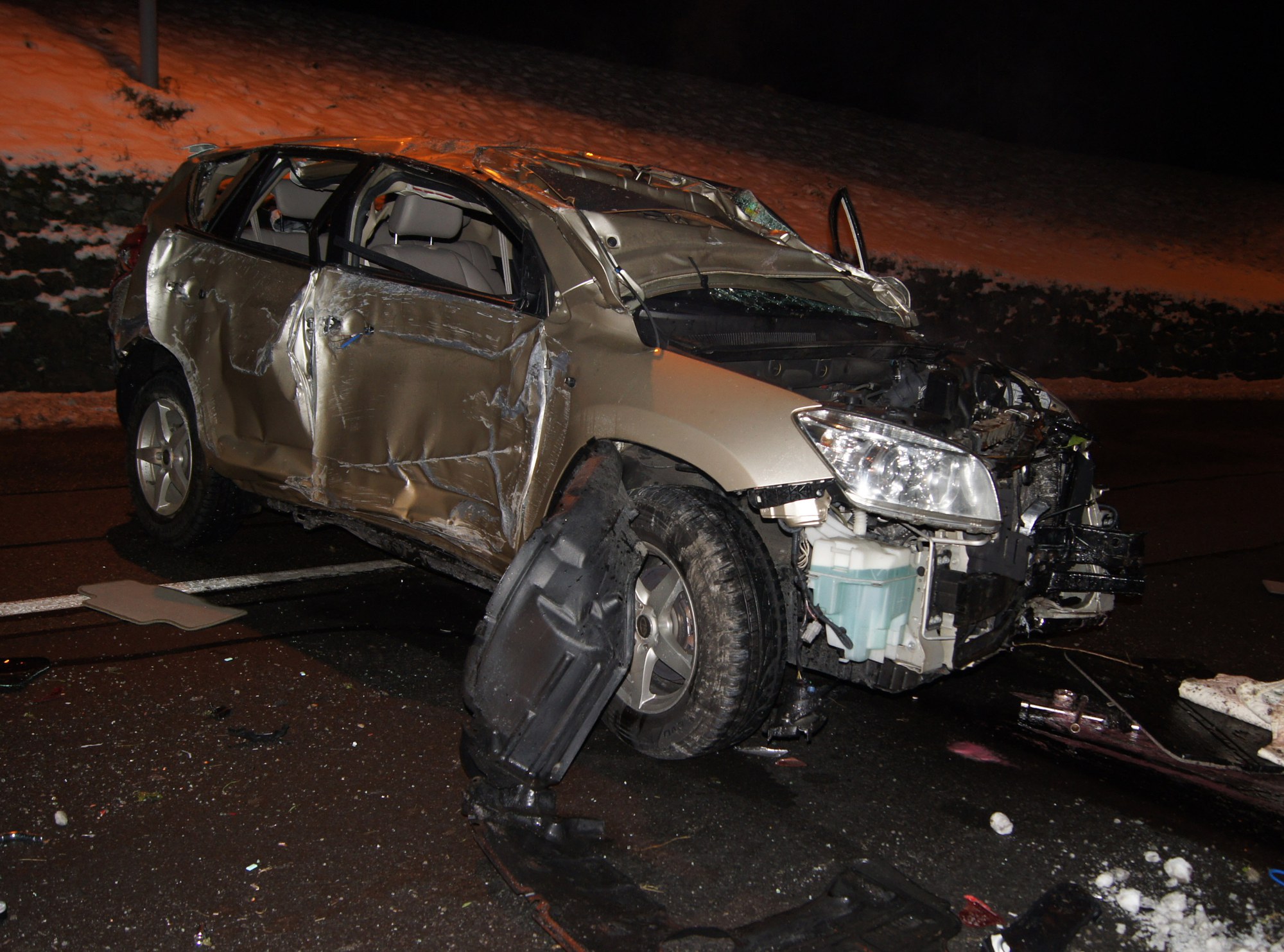 In der Nacht auf Dienstag (10. Januar 2017), kurz vor 05:00 Uhr, bemerkten Einsatzkräfte der Freiwilligen Feuerwehr Zug (FFZ) bei der Autobahnausfahrt Baar einen Personenwagen mit glühenden Bremsen. Sofort alarmierten sie die Zuger Polizei und fuhren dem Auto nach. Dessen Lenker, ein 54-jähriger Mann, fuhr unterdessen weiter in Richtung Oberwil. Auf der Artherstrasse, Höhe Biohof, bog er links auf die dortige Zufahrtsstrasse ab. In der Folge überschlug sich das Auto, beschädigte drei Beleuchtungskandelaber wie auch eine Mauer und stürzte über die Böschung hinunter auf die Artherstrasse.