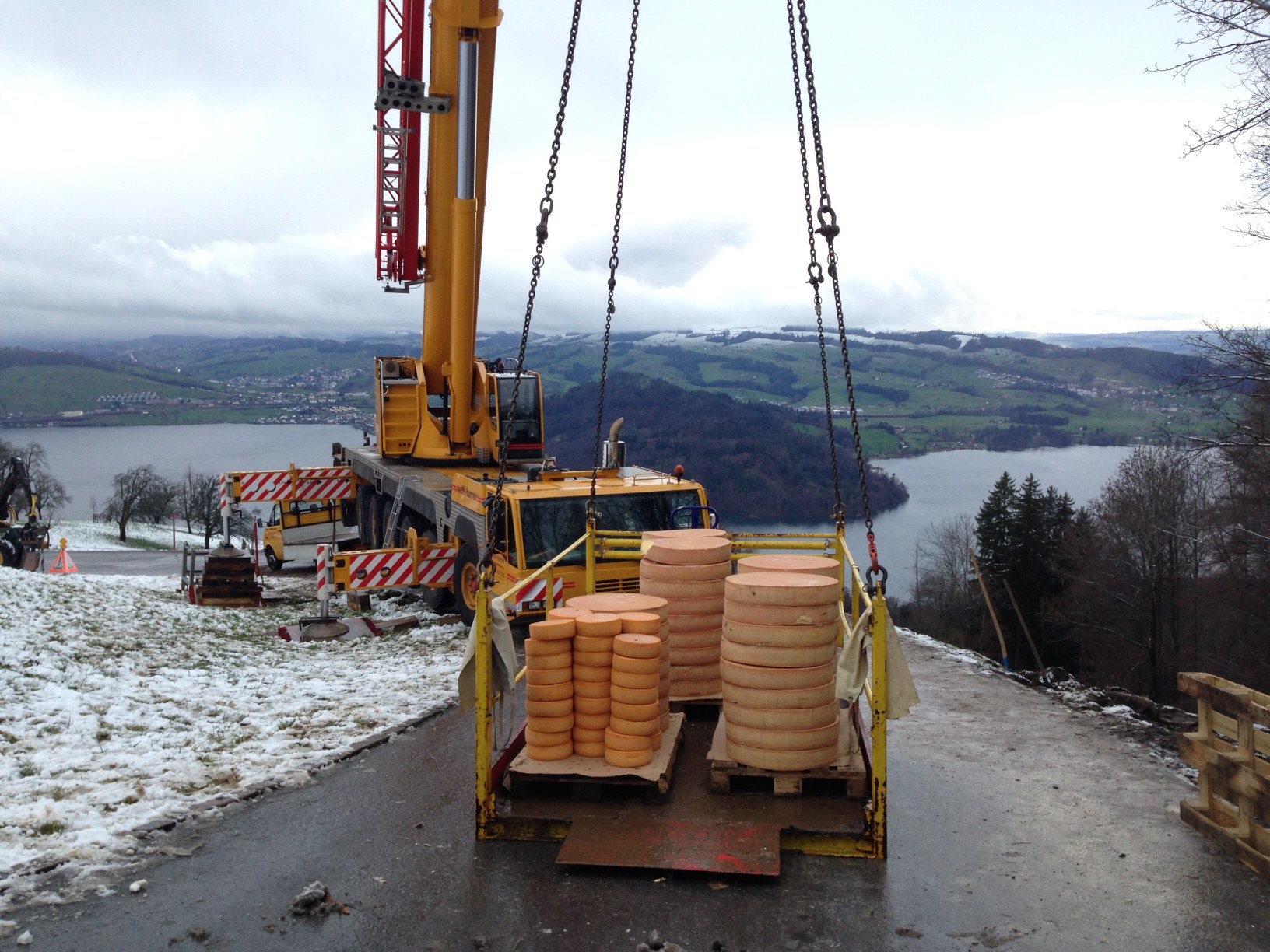 Für die Bergung der Käselaibe (35 kg/Stück) und des Lastwagens musste ein Pneukran aufgeboten werden. Die Vorderbergstrasse blieb während dieser Zeit gesperrt. Der Sachschaden beläuft sich nach ersten Schätzungen auf über Hunderttausend Franken.