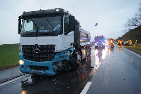 017 / Menzingen: Verletzter Autolenker bei Frontalkollision mit Lastwagen