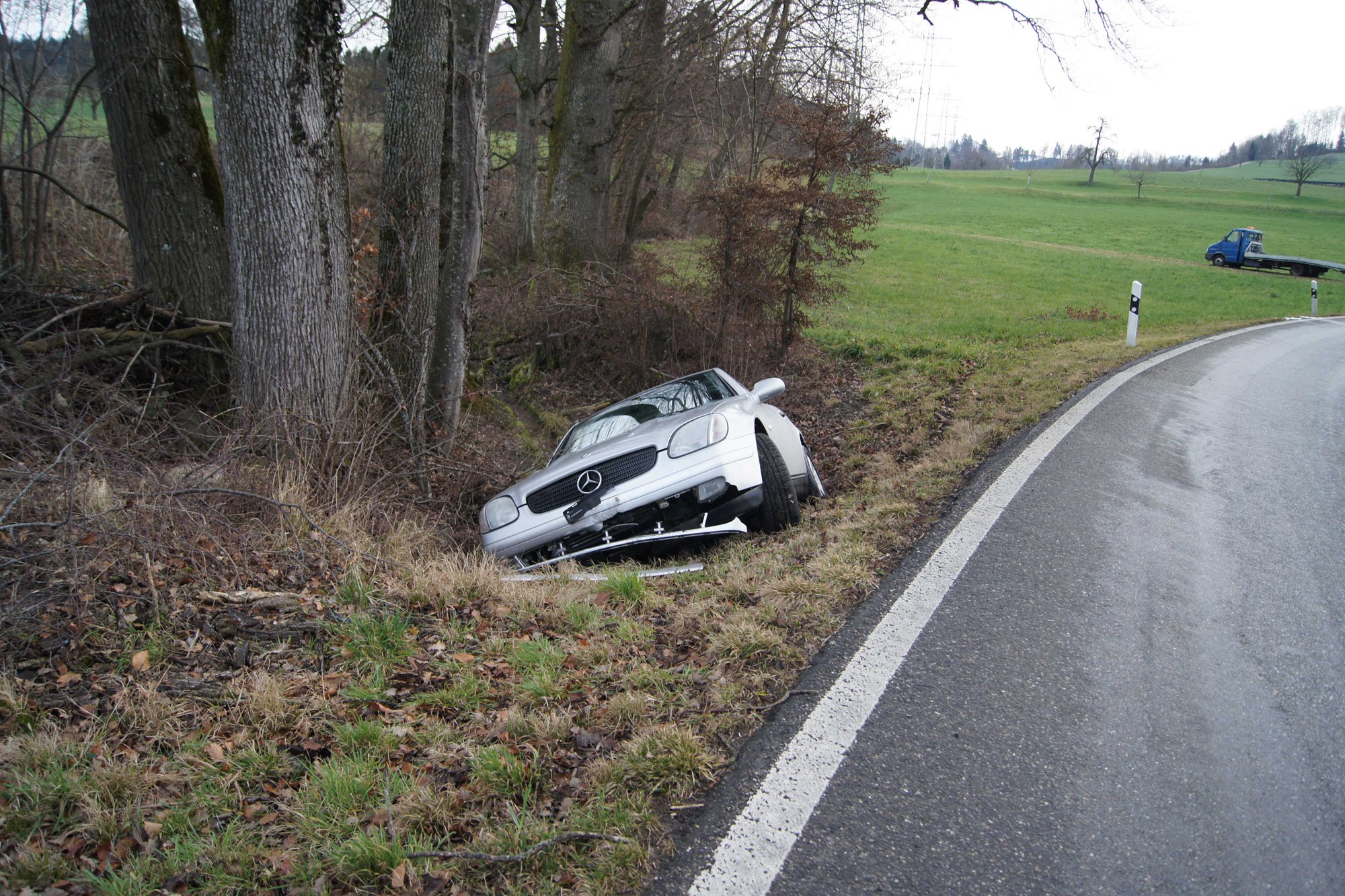 Ein Autolenker ist von der Strasse abgekommen und in ein Bachbett gestürzt. Der Fahrer blieb unverletzt.