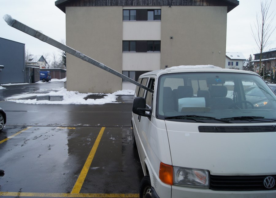 Heute Freitagmorgen (15. Februar 2013) kurz vor 10:30 Uhr befuhr ein VW-Bus die Sinserstrasse in Hünenberg in Richtung Lindencham. Aus dem Beifahrerfenster ragte ein Metallprofil so weit hinaus, dass der Lenker bei Verkehrssignalen auf die Gegenfahrbahn ausweichen musste. Eine Polizeipatrouille konnte diese Fahrmanöver beobachten und das Fahrzeug anhalten. Der Lenker, ein 59-jähriger Schweizer, sagte aus, dass er sich der Gefährlichkeit seines verbotenen Transports durchaus bewusst war. Im Anschluss an die Anhaltung konnte er mit ein paar Handgriffen das Metallprofil gesetzteskonform umladen.