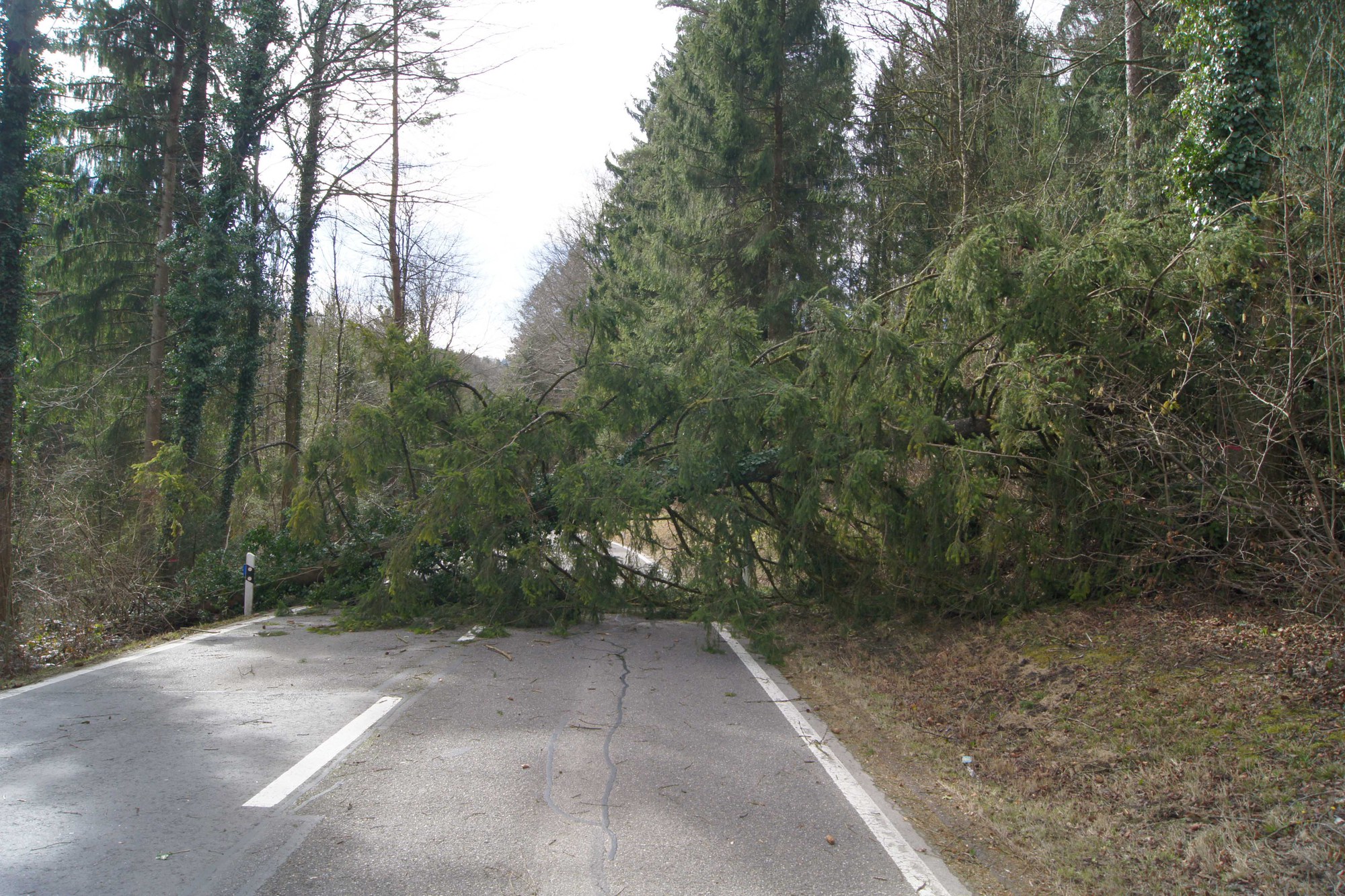Seit Samstagmorgen (4. März 2017) gingen bei der Einsatzleitzentrale der Zuger Polizei rund zwei Dutzend Meldungen über umgestürzte Bäume, Bauabschrankungen, Baugerüste und abgebrochene Äste ein. Betroffen waren die Gemeinden Ober- und Unterägeri, Zug, Baar, Neuheim und Steinhausen.