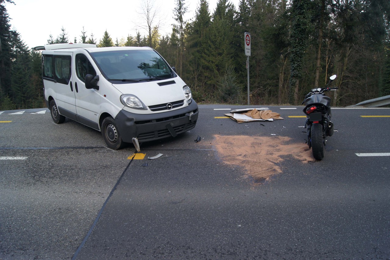 Zwischen Baar und Sihlbrugg sind ein Motorrad und ein Lieferwagen zusammengeprallt. Eine Person wurde verletzt.