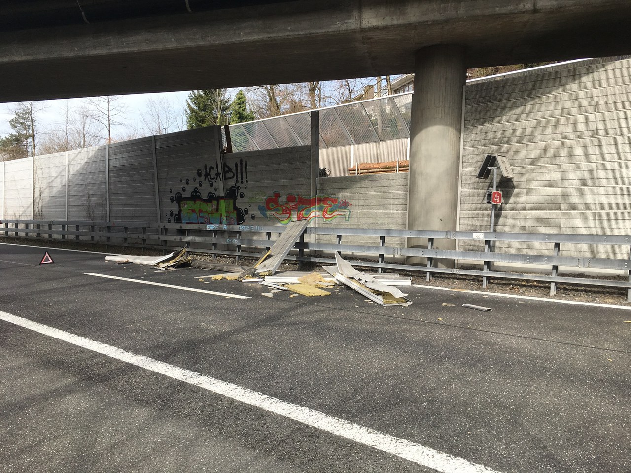 Am Dienstag (3. April 2018), kurz nach 10:15 Uhr, ist ein mit 25 Tonnen Holz beladener Lastwagen mit Aufleger, der auf der A4a in Richtung Baar fuhr, kurz vor der Ausfahrt Baar linksseitig in die Leiteinrichtung geprallt. Dabei beschädigte er auch die Lärmschutzwand auf rund 60 Metern. Weil der verunfallte Lastwagen verkeilt war und den Überholstreifen blockierte, musste dieser vorübergehend gesperrt werden. Dadurch kam es zu geringer Verkehrsbehinderung. Um den beschädigten Lastwagen bergen zu können, musste das Unternehmen die Holzladung auf einen anderen Sattelschlepper umladen. Dazu wurde auch der Normalstreifen kurzzeitig gesperrt und der Verkehr in dieser Zeit über den Pannenstreifen geführt.