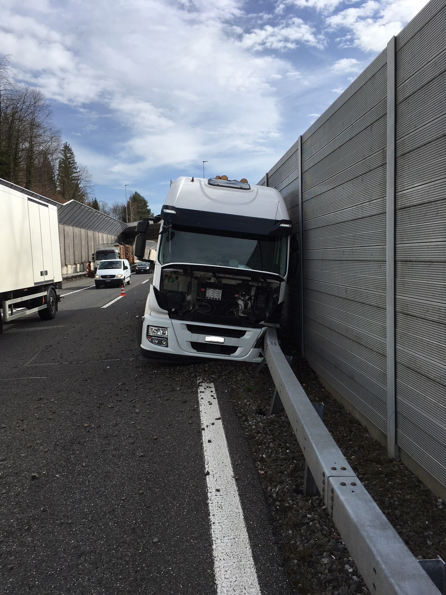 Ein Lastwagen verunfallte auf der Autobahn und prallte in die Lärmschutzwand. Es entstand erheblicher Sachschaden und der Unfall führte zu Verkehrsbehinderungen.