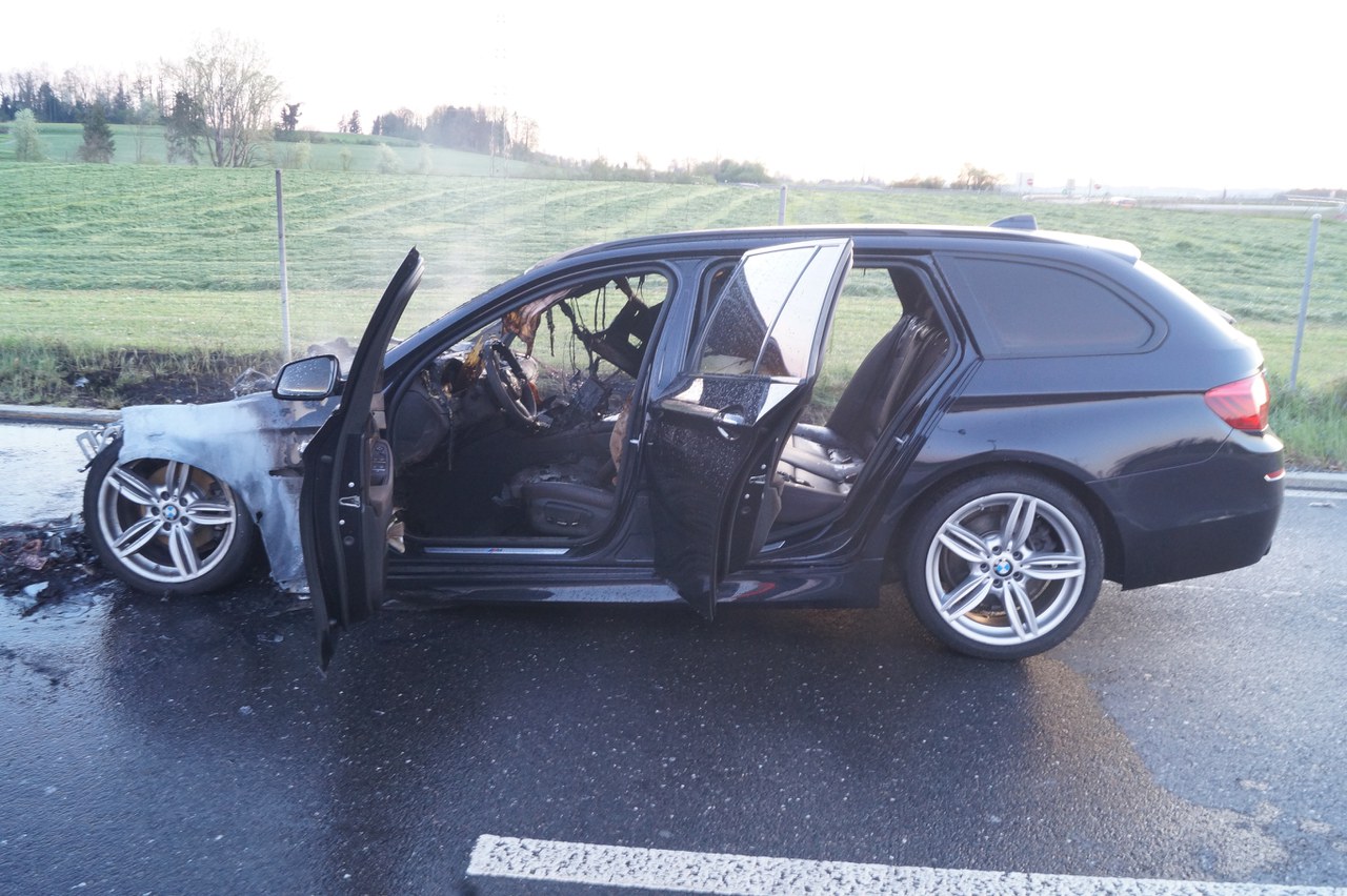 Am Samstagabend (21. April 2019), kurz vor 20 Uhr, war ein Autolenker auf der Autobahn A4 von Luzern herkommend Richtung Zürich unterwegs, als er plötzlich Rauch wahrnahm, der aus seinem Fahrzeug drang. Der 39-Jährige befand sich zu diesem Zeitpunkt kurz vor der Ausfahrt Lindencham und verliess die Autobahn umgehend. Als er und die anderen vier Fahrzeuginsassen an der Sinserstrasse in Cham ausgestiegen waren, stellten sie im Bereich des Motorenraums Flammen fest. Die aufgebotenen Angehörigen der Feuerwehr Cham konnten den Fahrzeugbrand rasch löschen. Während der Löscharbeiten musste die Sinserstrasse vorübergehend gesperrt werden. Verletzt wurde niemand. Am Auto entstand Totalschaden. Für die Spurensicherung und die Ermittlung der Brandursache wurde der Kriminaltechnische Dienst der Zuger Polizei beigezogen.