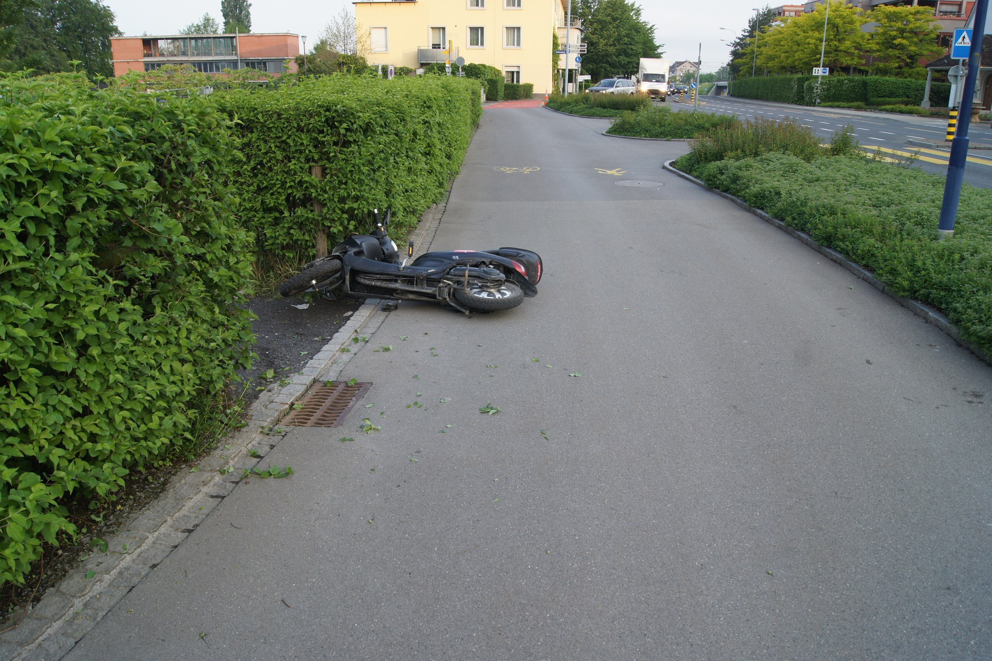 Am Freitag (18. Mai 2018), um 06:20 Uhr, erhielt die Einsatzleitzentrale die Meldung, dass ein Zweiradlenker an der Chamerstrasse in Zug in einem Gebüsch liege. Die sofort ausgerückten Einsatzkräfte trafen vor Ort auf einen 25-Jährigen. Der Mann wurde vom Rettungsdienst Zug medizinisch versorgt und mit erheblichen Verletzungen ins Spital überführt. Der Verunglückte, ein slowakischer Staatsangehöriger, stand zum Zeitpunkt des Unfalls unter Alkoholeinfluss.