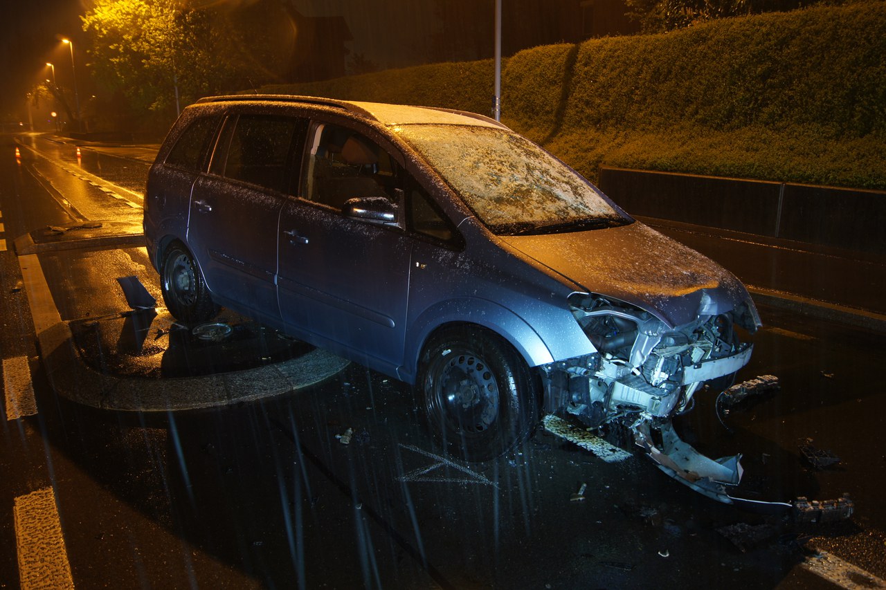 Ein feuchtfröhlicher Abend endete abrupt. Ein Auto prallt in eine Fussgängerinsel. Doch keiner will der Lenker sein. Die Polizei sucht deshalb Zeugen.