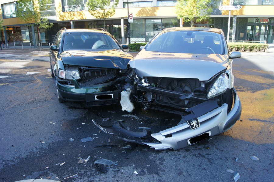 An Auffahrt (17. Mai 2012) sind auf der Kreuzung Rathausstrasse/Marktgasse zwei Autos miteinander kollidiert. Zwei Personen verletzten sich leicht. Beide Fahrzeuge erlitten Totalschaden.