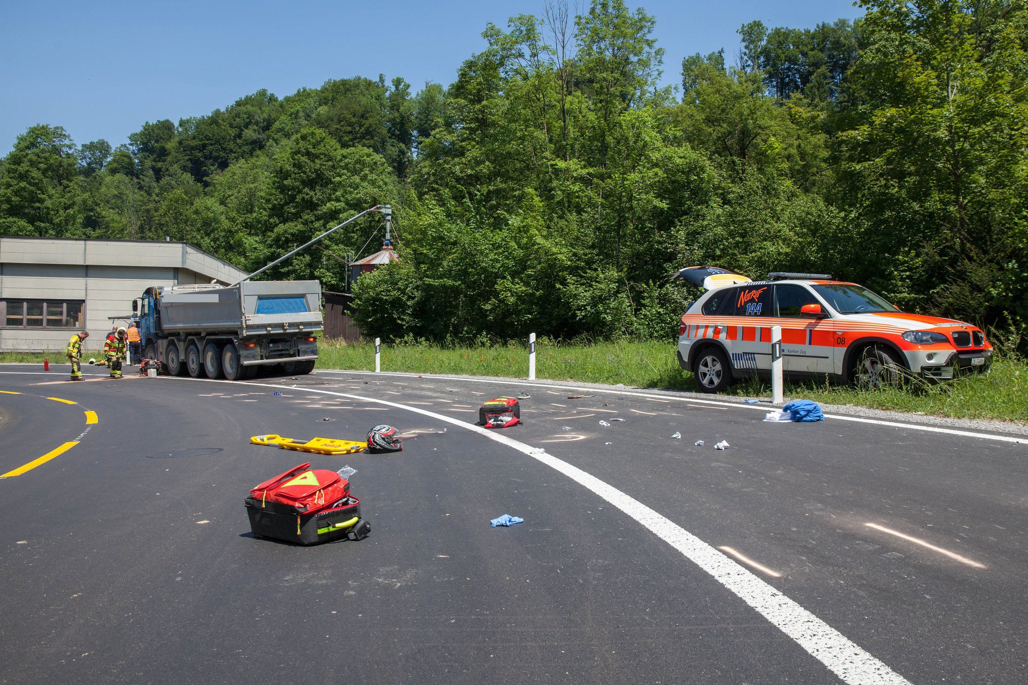 Für die Bergung des Verletzten und die Spurensicherung durch den Kriminaltechnischen Dienst der Zuger Polizei musste die Sihlbruggstrasse zwischen Sihlbrugg und Neuheim kurzzeitig gesperrt werden.