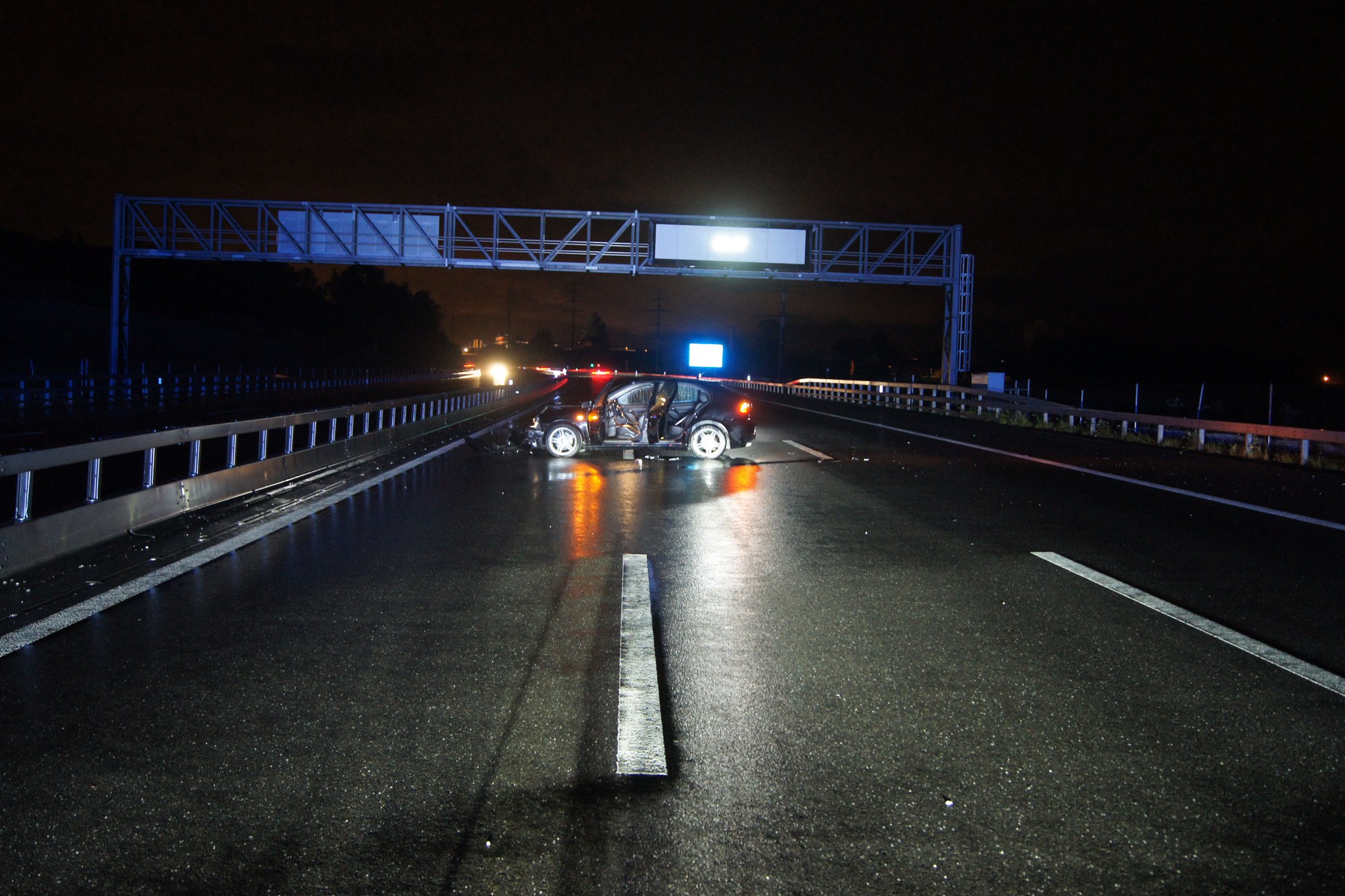Nach ersten Erkenntnissen führte Aquaplaning zum Unfall. Der Verkehr musste während der Unfallaufnahme einspurig geführt werden.