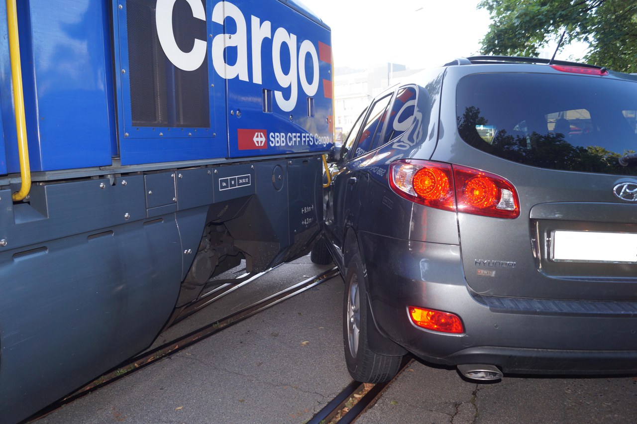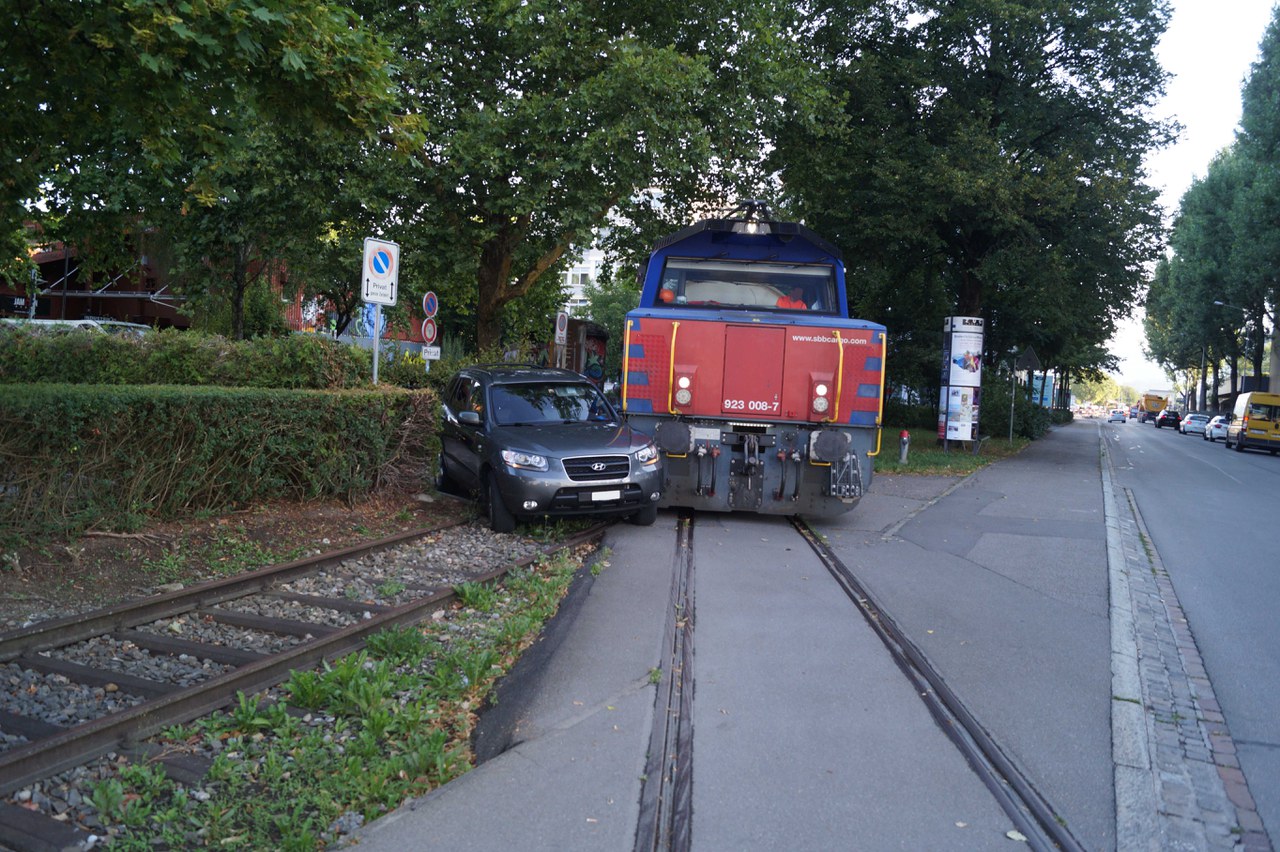 Auf der Industriestrasse hat eine Rangierlokomotive ein Fahrzeug gerammt. Verletzt wurde niemand.