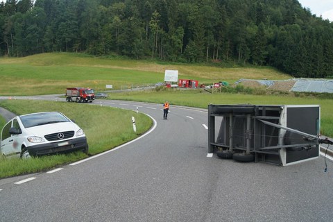 153 / Baar: Anhänger kippt und prallt in entgegenkommendes Auto