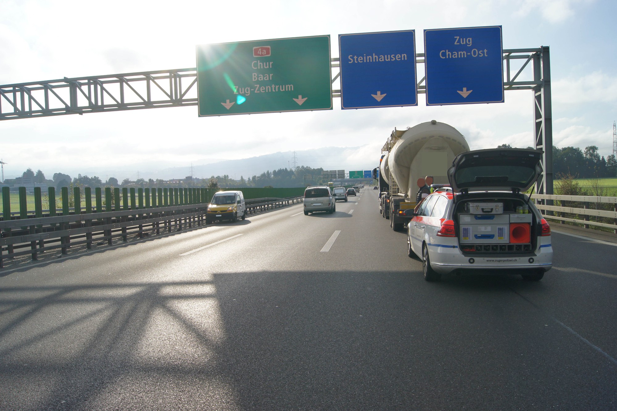 Im Einsatz standen Mitarbeitende der Zentras, eines privaten Abschleppunternehmens sowie der Zuger Polizei.
