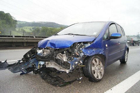 189 / Risch Rotkreuz: Auf nasser Fahrbahn in Leitplanke geprallt