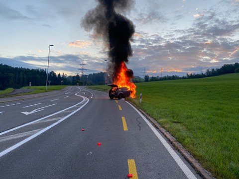 190 / Baar: Ausgebranntes Fahrzeug nach Selbstunfall