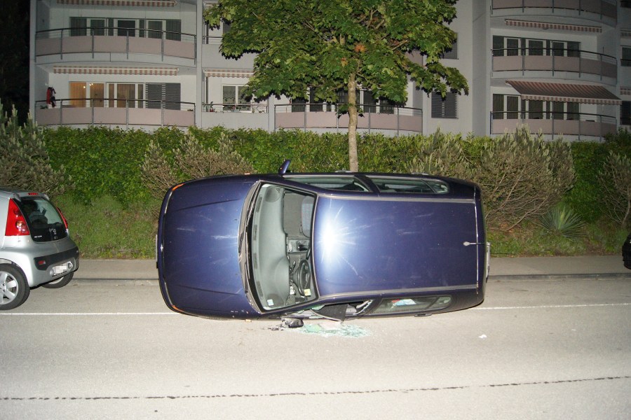Steinhausen: Vier Burschen kippen parkiertes Auto um