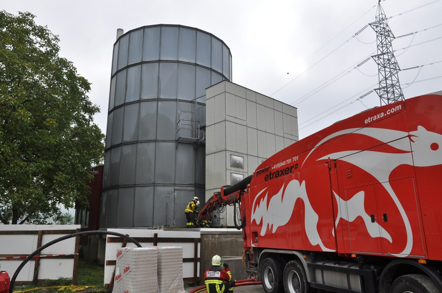 Am Freitag (7. September 2012), gegen 08:45 Uhr, sind in einem Sägemehl-Silo einer Schreinerei an der Neuhofstrasse in Baar Glutnester entdeckt worden. Die Feuerwehr war mit einem Grossaufgebot vor Ort. Die Löscharbeiten gestalteten sich sehr anspruchsvoll. In einer ersten Phase kühlten die Feuerwehrleute das Silo von aussen. Dann machte sich die Atemschutztruppe daran, das Silo auszupacken und mittels Saugwagen das Sägemehl abzusaugen, um an die Glutnester zu gelangen. Als diese mit Luft in Kontakt gerieten, kam es zu mehreren Verpuffungen. Nach rund vier Stunden hatten die Feuerwehrleute das Material abgesaugt und alle Brandherde gelöscht.