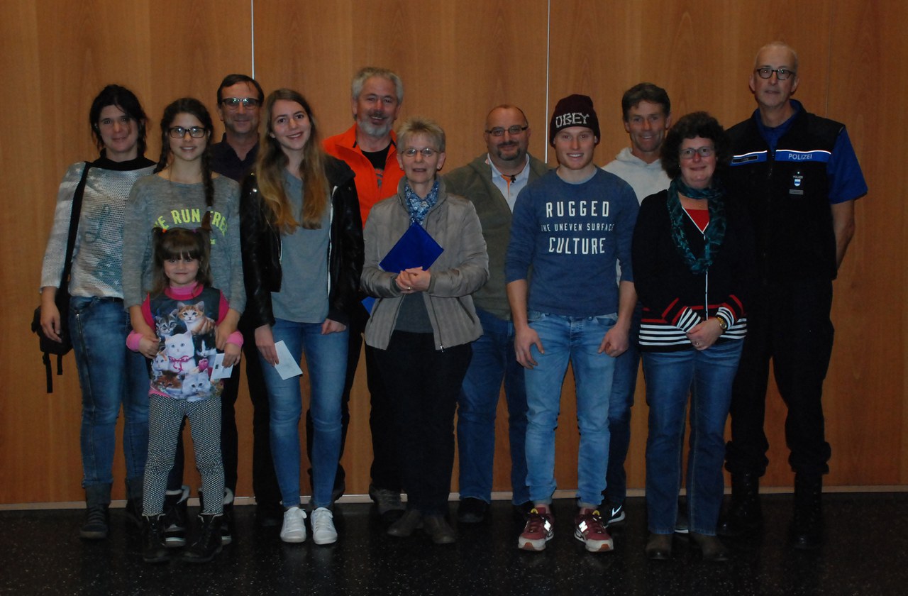 Die Auslosung der rund 8'000 abgegebenen Wettbewerbskarten bedeutete für acht Personen eine vorweihnachtliche Bescherung. Zu gewinnen gab es zwei Zuger Geschenkkarten wie auch Gutscheine für die Zugersee Schifffahrt, die Zuger Kinos und den Swiss Holiday Park. Am Donnerstagabend (24. November 2016) durften Annina Graf, Vincenzo Serratore, Hans Halter, Alain Dougoud, Irene Schicker, Yvonne Ulrich, Corinne Greber und Romana Schneiter ihre Preise entgegennehmen. Zwei Gewinnerinnen konnten nicht anwesend sein und wurden durch ein Familienmitglied vertreten. Übergeben wurden die Preise durch Gregor Bättig, Chef Kommandobereiche. Anlässlich eines kleinen Rahmenprogramms kamen die anwesenden Personen anschliessend noch in den Genuss einer Spezialführung durch das Polizeihauptgebäude.