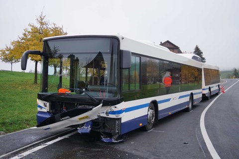 246 / Baar: Frontalkollision zwischen Auto und Linienbus