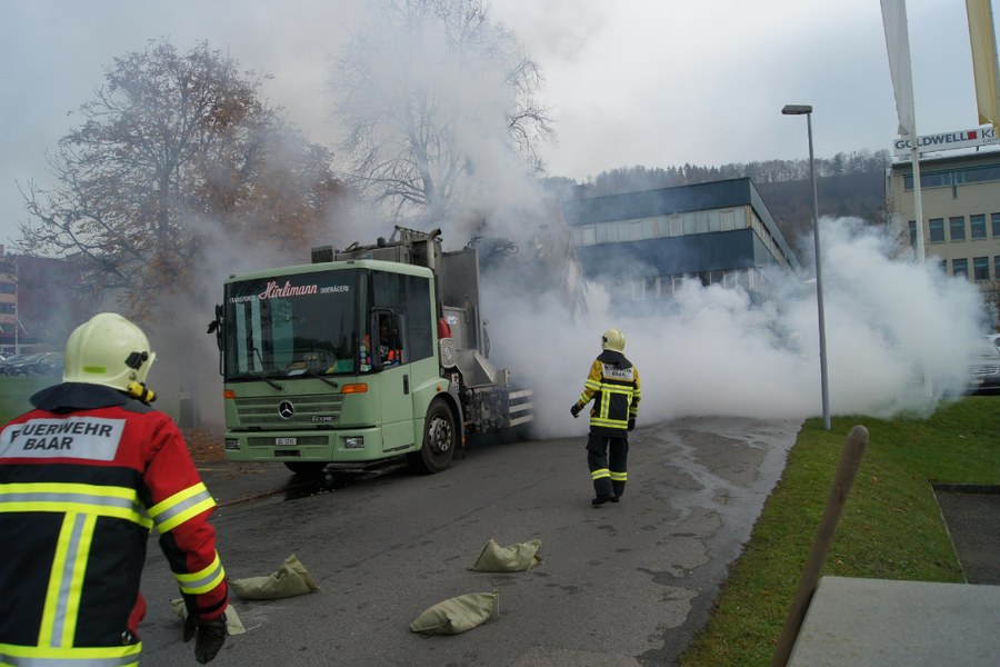 Der 45-jährige Chauffeur befand sich auf seiner Tour gerade auf der Ruessenstrasse in Sihlbrugg bei Baar, als er kurz vor 13:30 Uhr beissenden Rauch aus dem Laderaum wahrnahm. Aus unbekannten Gründen hatte seine Fracht Feuer gefangen. Der Mann reagiert sofort, setzte den Container ab und brachte sich und das Fahrzeug in Sicherheit. Die alarmierte Feuerwehr Baar brachte die Flammen unter Kontrolle und konnte das Feuer schliesslich löschen. Verletzt wurde niemand.